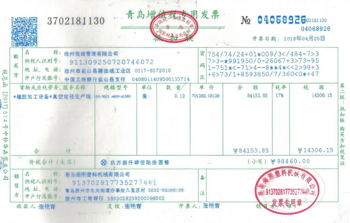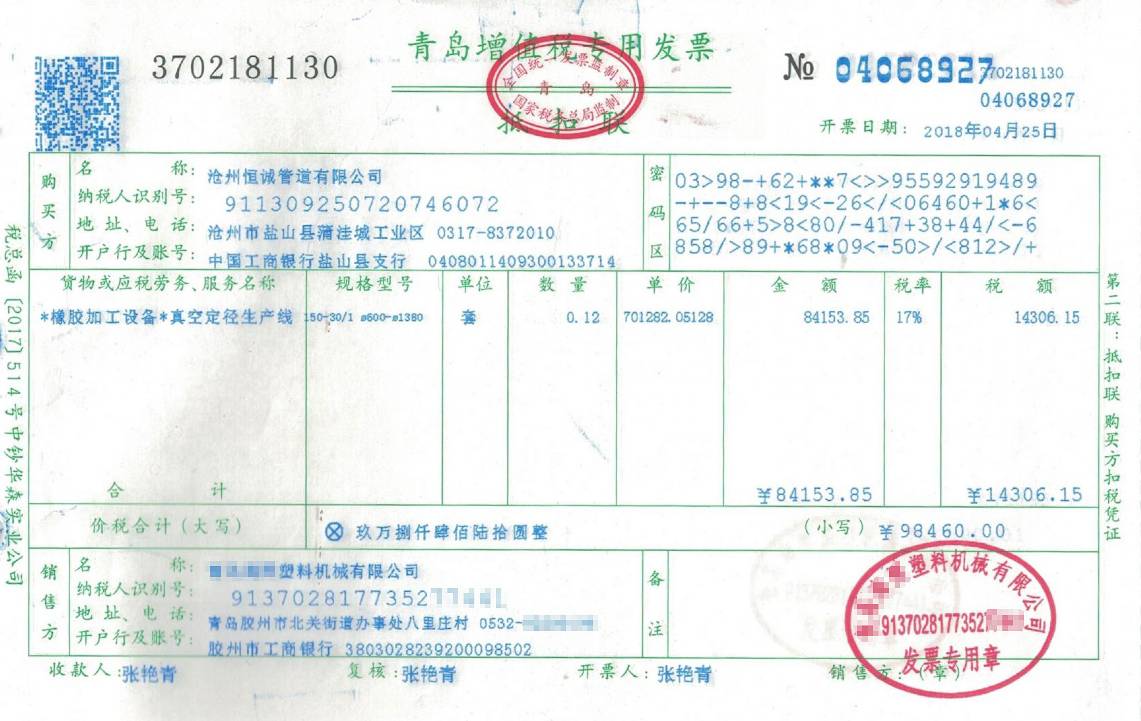 當(dāng)前位置:網(wǎng)站首頁  >  恒誠實(shí)力  >  恒誠設(shè)備發(fā)票  >  保溫皮套管擠出機(jī)設(shè)備發(fā)票