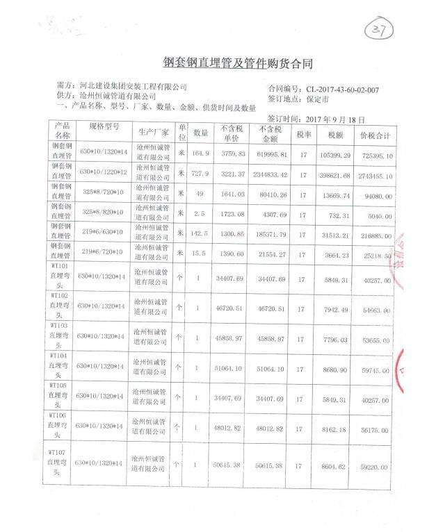 河北建設(shè)集團安裝工程有限公司與我公司簽署鋼套鋼直埋保溫管供應(yīng)合同